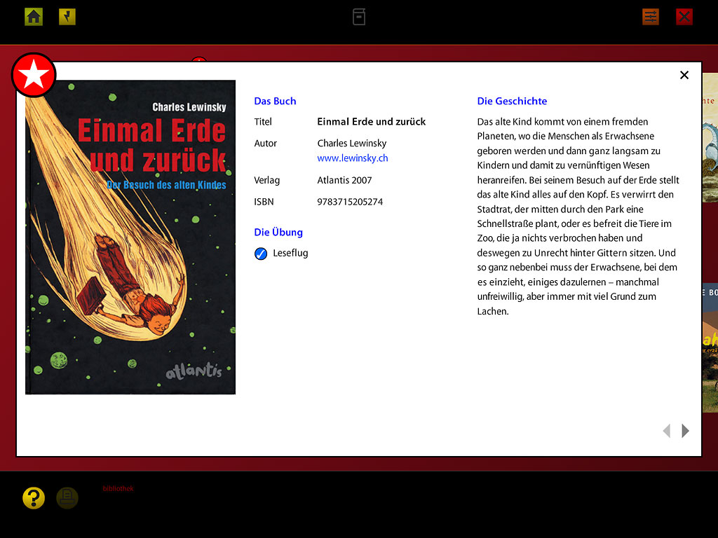 Ausserdem können die Kinder die gelesenen Texte als Lieblingstext markieren und eine Liste ihrer Lieblingstexte ausdrucken. Diese Liste hilft den Kindern, in der Bibliothek oder Buchhandlung interessante Bücher und Zeitschriften zu finden. |