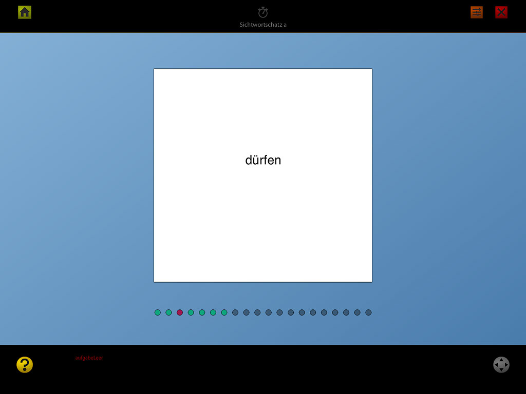 Sichtwortschatzmisst, wie viele Wörter auf einen Blick (logographisch) erkannt werden. Für jede Leistungsstufe ist ein Korpus der häufigsten Wörter definiert. Ein zufällig ausgewähltes Wort aus diesem Korpus wird sehr kurz angezeigt und muss dann in einer Liste von 10 ähnlichen Wörtern wieder erkannt werden. Jeder Test besteht aus 20 solchen Aufgaben. Die Leistung wird als prozentualer Anteil der richtig erkannten Wörter ausgedrückt. |
