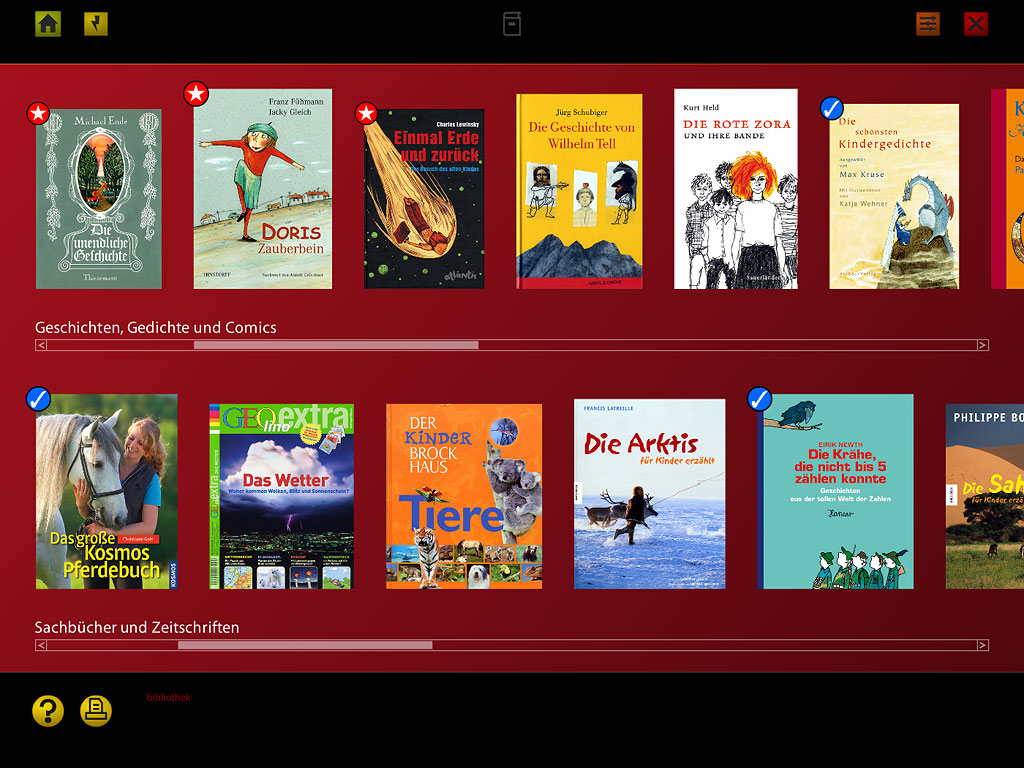 In der Bibliothek haben die Kinder Zugriff auf Texte aus rund 200 Büchern und Zeitschriften. Sie können ihre Lieblingstexte auswählen und finden vielfältige Tipps und Links für das Weiterlesen in Schule, Bibliothek und Familie.