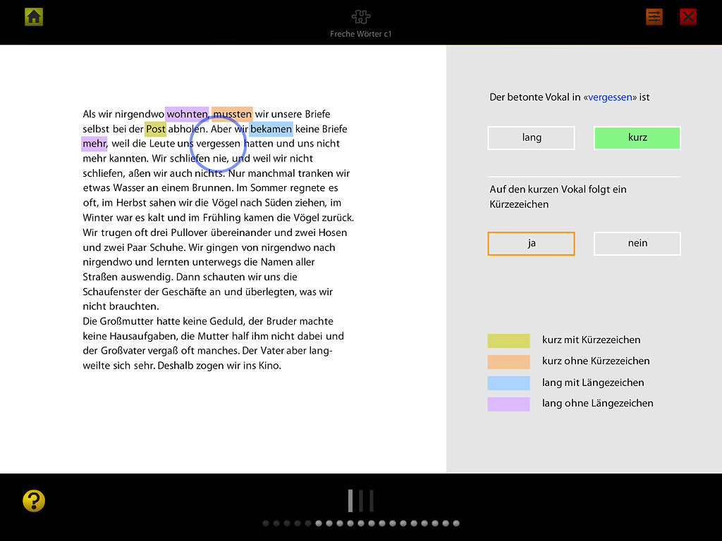 In gelesenen Wörtern die Länge oder Kürze von Vokalen und ihre orthografischen Marierungen erkennen.